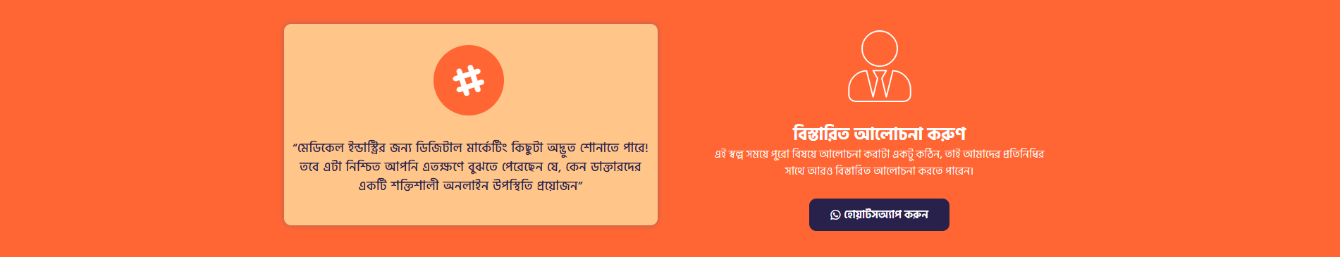 সঠিক ও বিশ্বাসযোগ্য তথ্যের অভাবে প্রতিদিন হাজারো মানুষ চিকিৎসা সেবা নিতে পাশের দেশে যাচ্ছে। ডিজিটাল মার্কেটিং এর মাধ্যমে সাধারণ মানুষকে সচেতন করলে সুনিশ্চিতভাবে বিরাট পরিবর্তন সম্ভব!